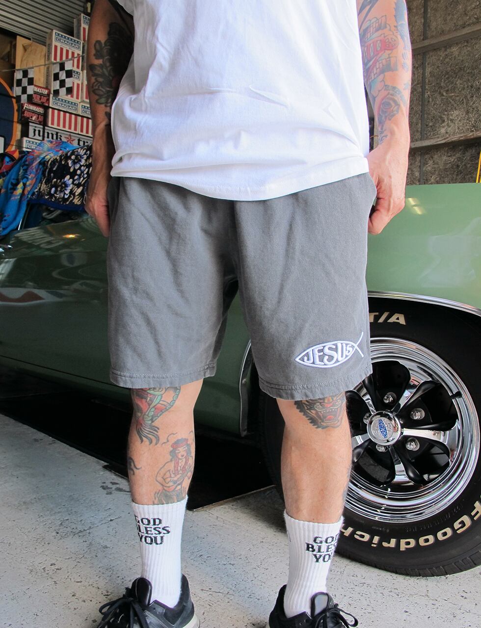 JUNKTRAP スウェットショートパンツ JESUS ペッパー